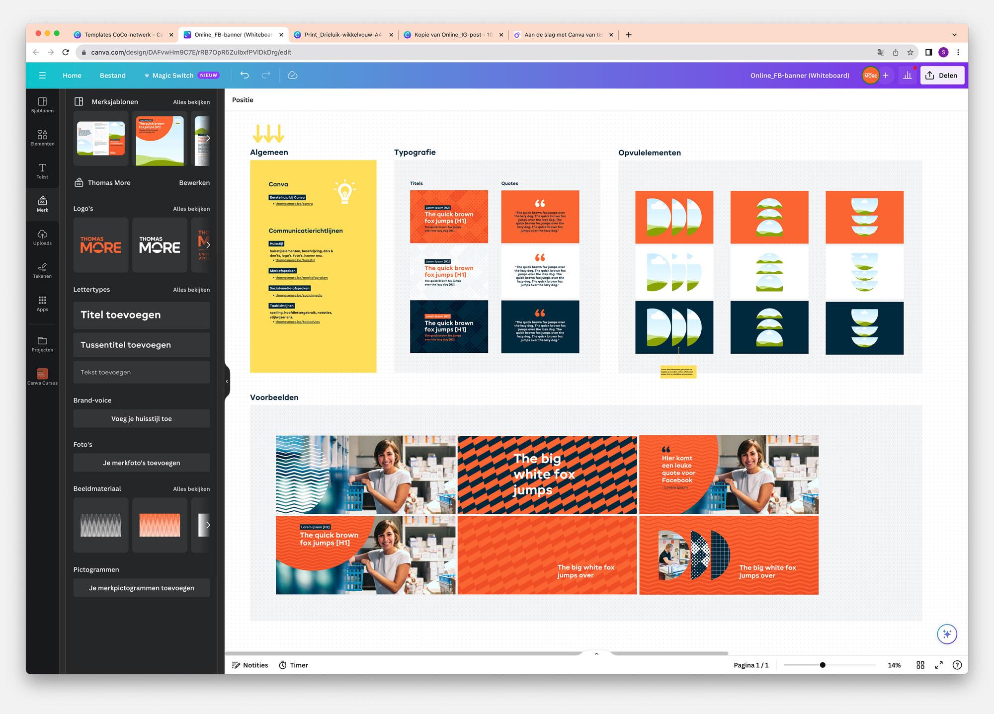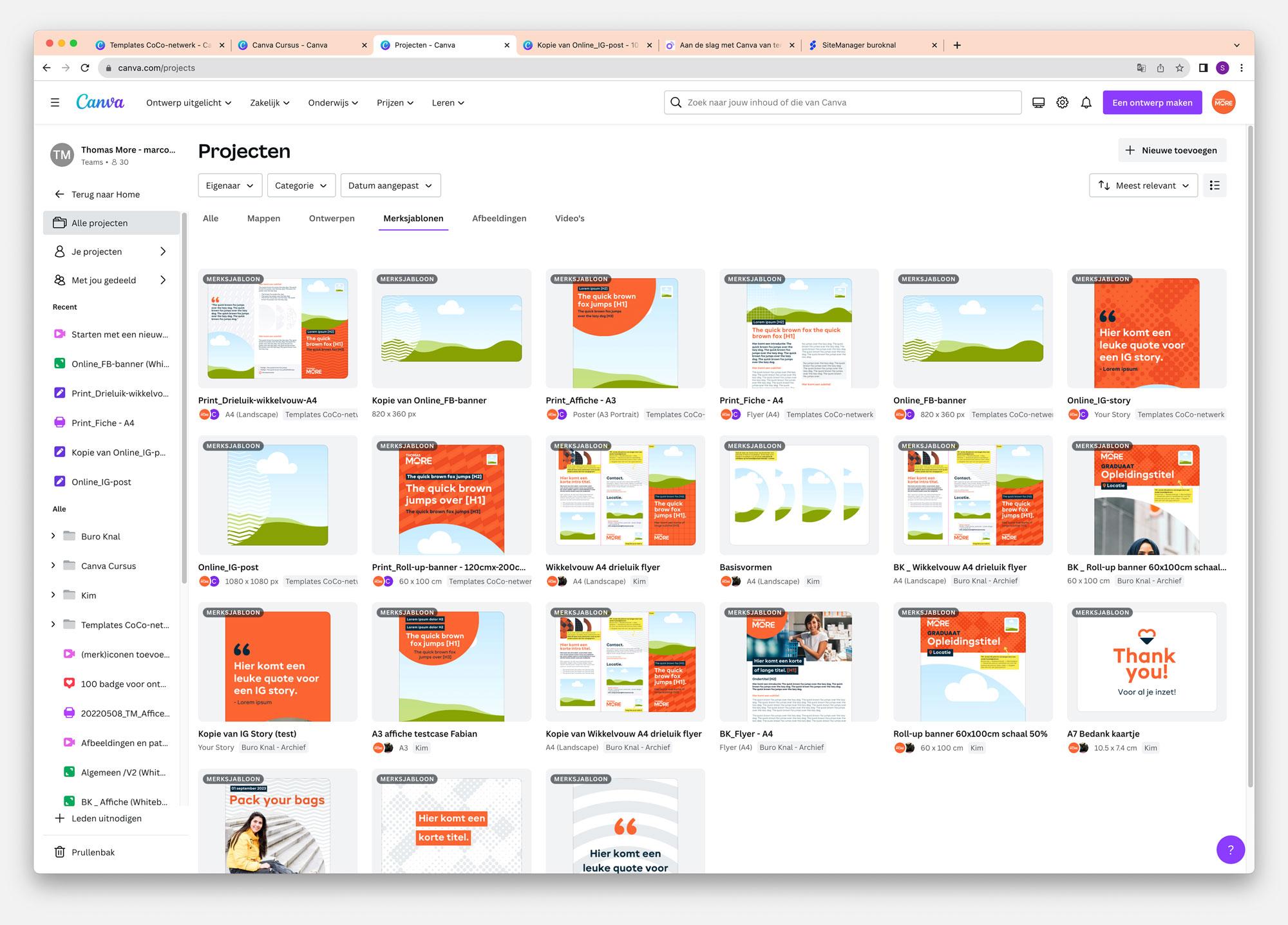 Thomas More kreeg een tijdje geleden een nieuwe huisstijl en 20 communicatiemedewerkers moeten daarmee aan de slag. Wij voorzien hen van gebruiksvriendelijke templates in Canva, een op maat gemaakte opleiding en maandelijkse terugkoppelmomenten voor vragen en suggesties.
