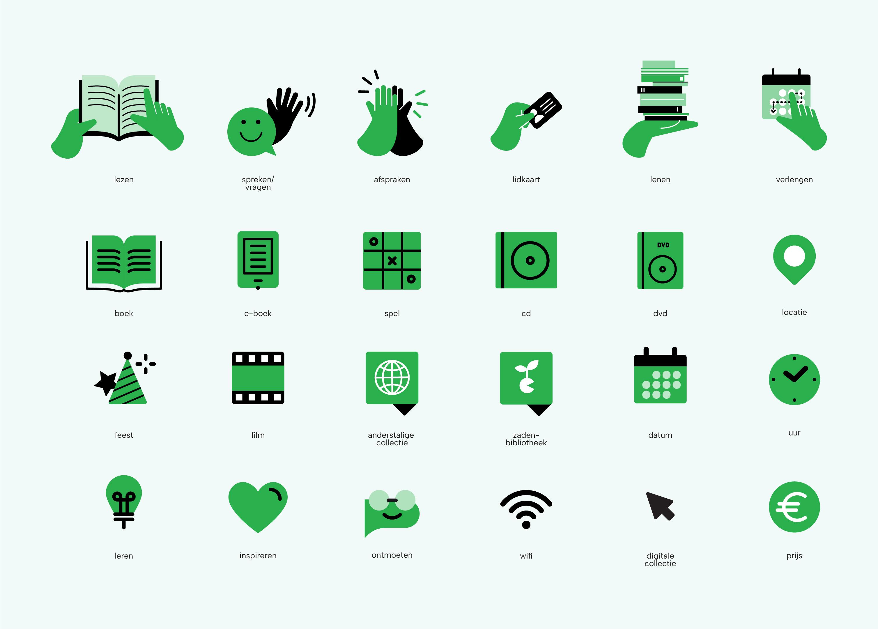Omdat elke bibliotheek zelf aan de slag gaat met de huisstijl ontwikkelden we een huisstijlgids met praktische do’s and don’ts en een overzicht van alle kleuren, logo’s, iconen en templates. Deze kan je hier bekijken.