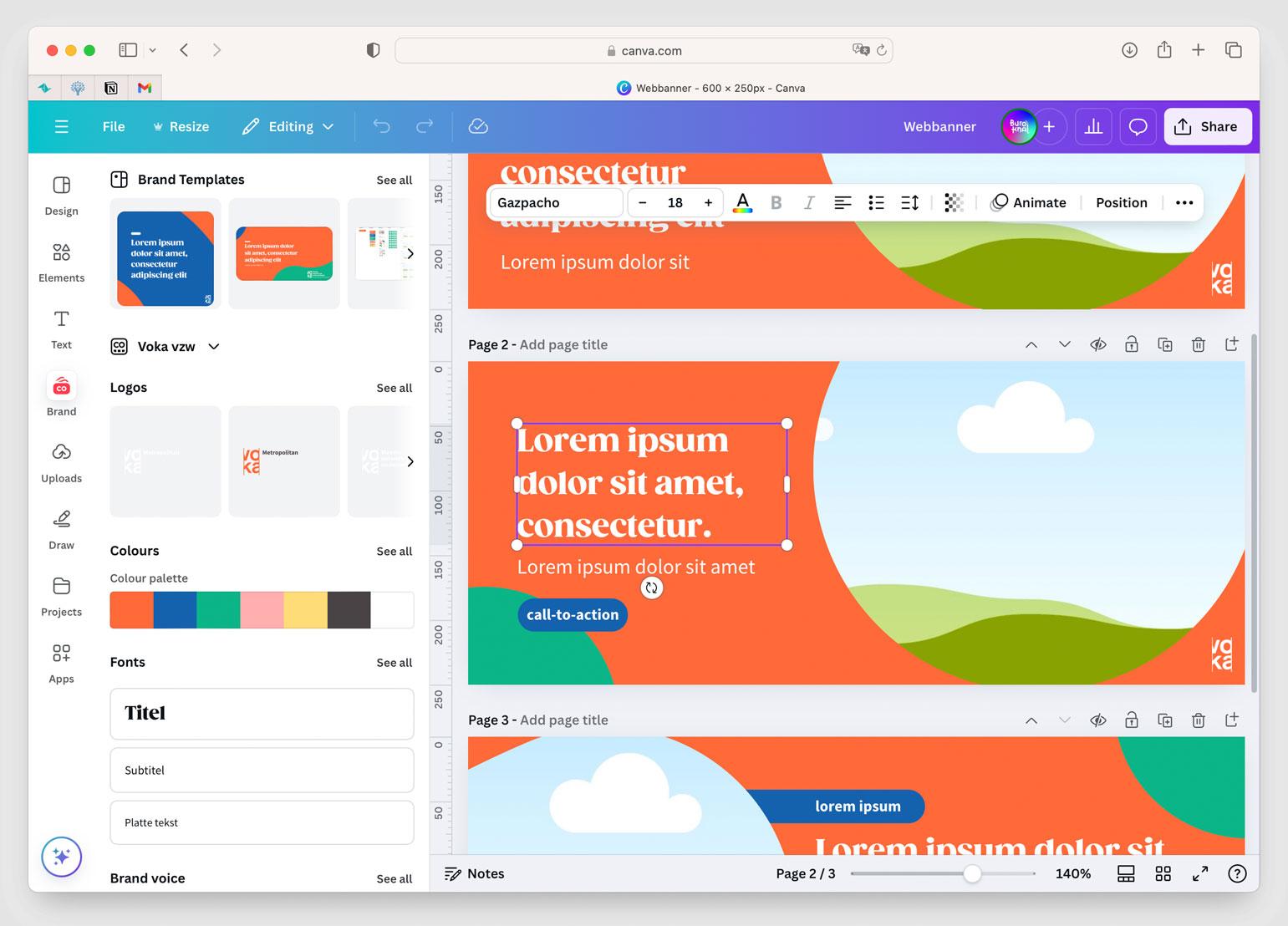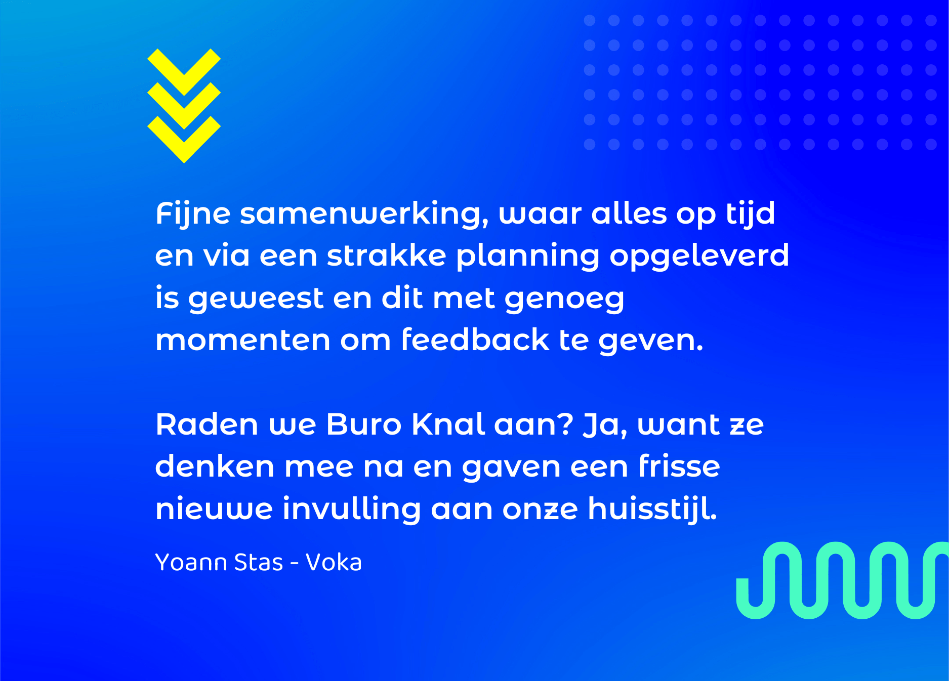 Verder werken op een bestaande huisstijl draagt niet meteen onze voorkeur, maar de huisstijl van Voka is heel kleurrijk en biedt veel variatie, dus dat sprak ons wel aan.