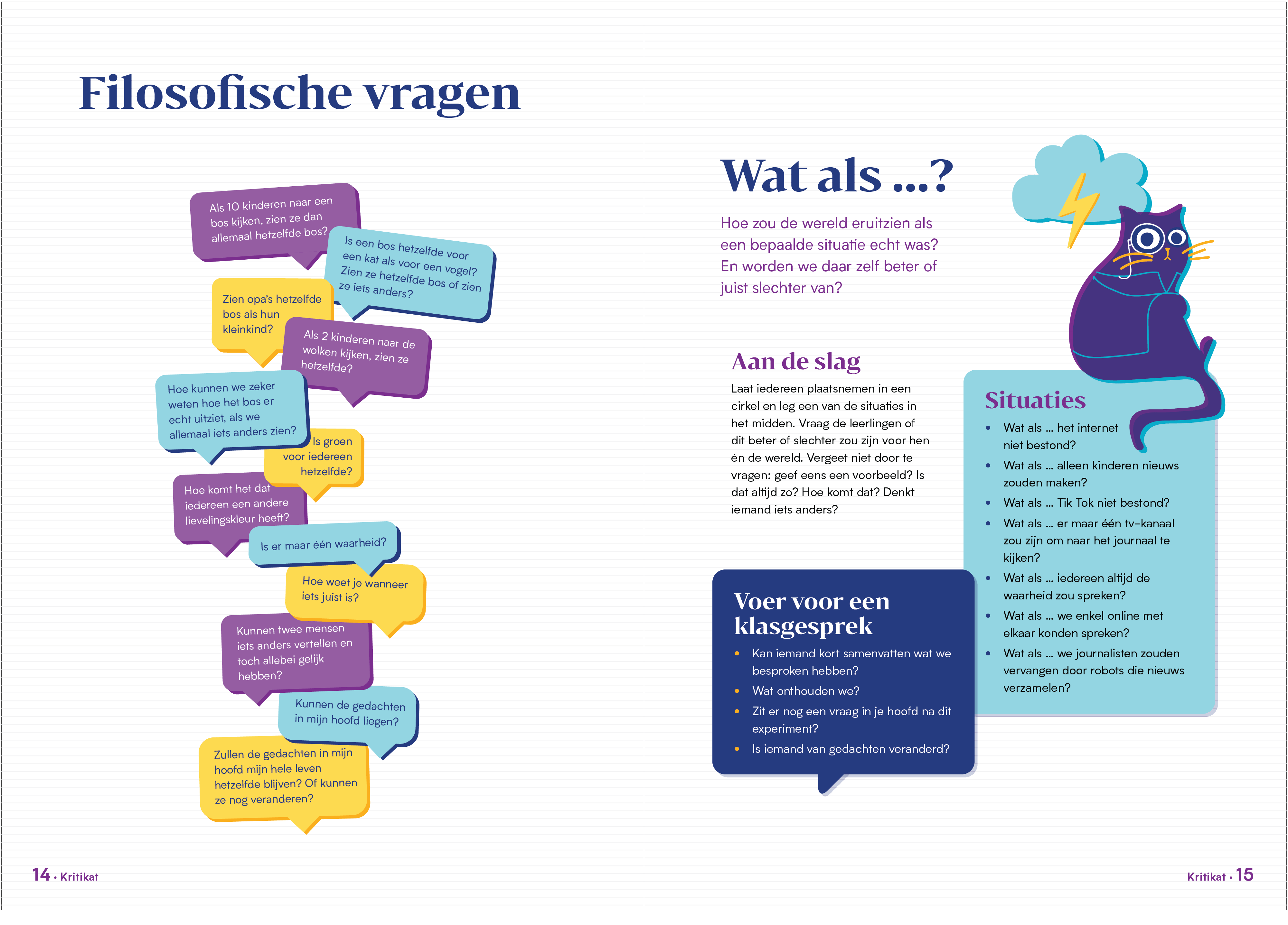 Buro Knal maakte voor Mediawijs een lesbundel voor leerkrachten om jonge tieners (eerste en tweede graad) te doen filosoferen over feit en fictie.
