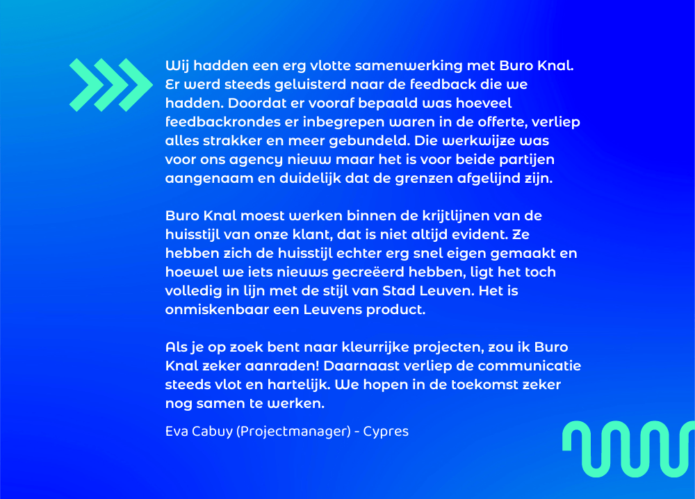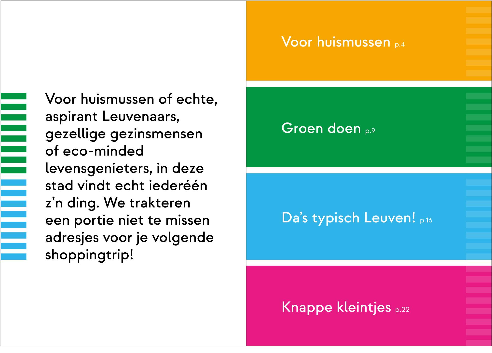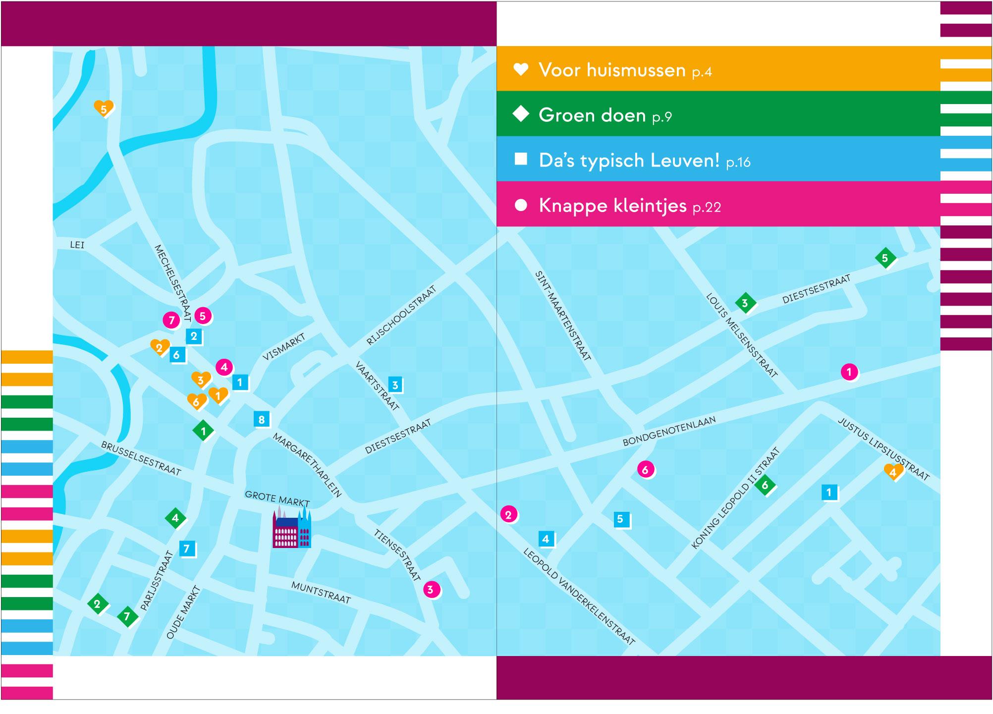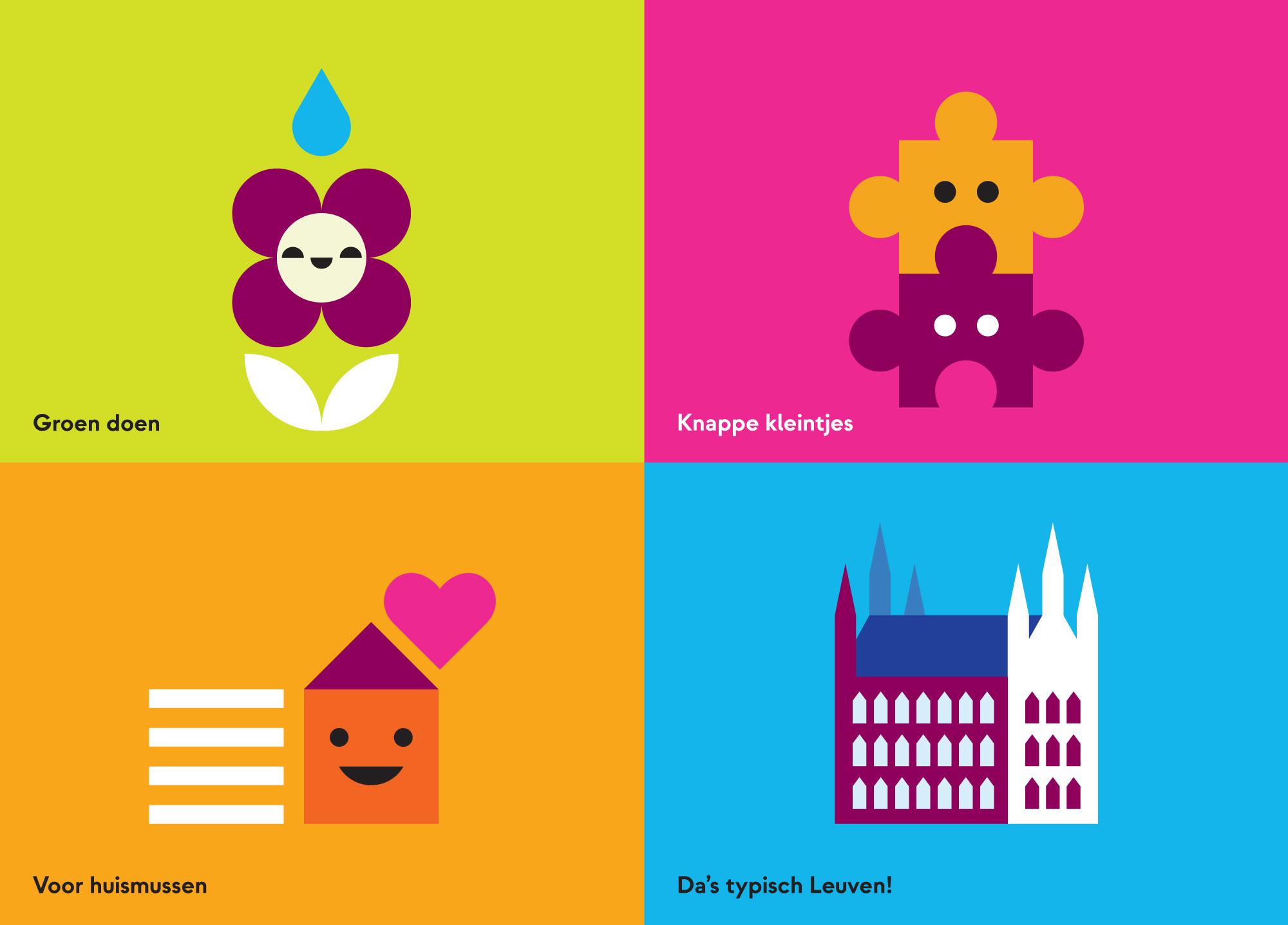 We werkten verder op de bestaande huisstijl van Stad Leuven die veel mogelijkheden biedt en waar wij met de toffe kleuren en patronen wel weg mee konden.