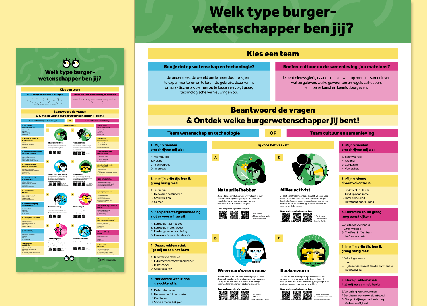 De illustraties en vormgeving maken van de quiz niet zomaar een test, maar een echte beleving. Elk profiel springt in het oog en brengt de boodschap van Scivil helder over. Missie geslaagd, toch?