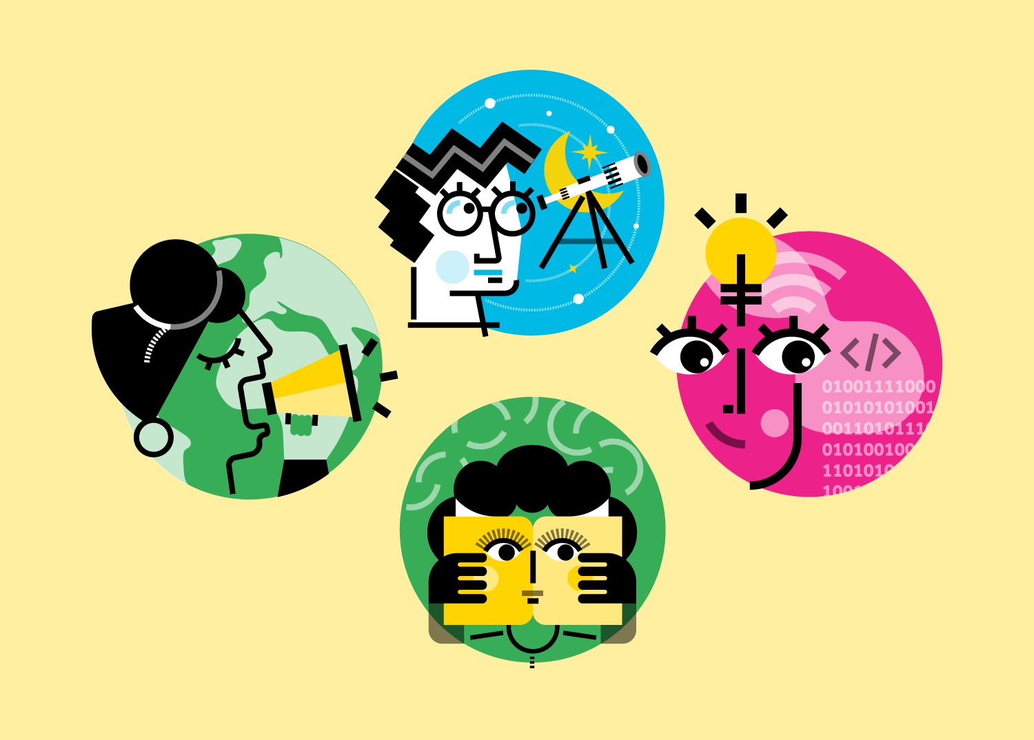 Voor Scivil werkten we aan een quiz waarmee je ontdekt welk type burgerwetenschapper je bent. Van sterrenkijkers tot verkeersvirtuozen – elk profiel kreeg een illustratie die hun passie perfect weergeeft. Het resultaat? Beelden die niet alleen informatief zijn, maar ook een vleugje speelsheid toevoegen.