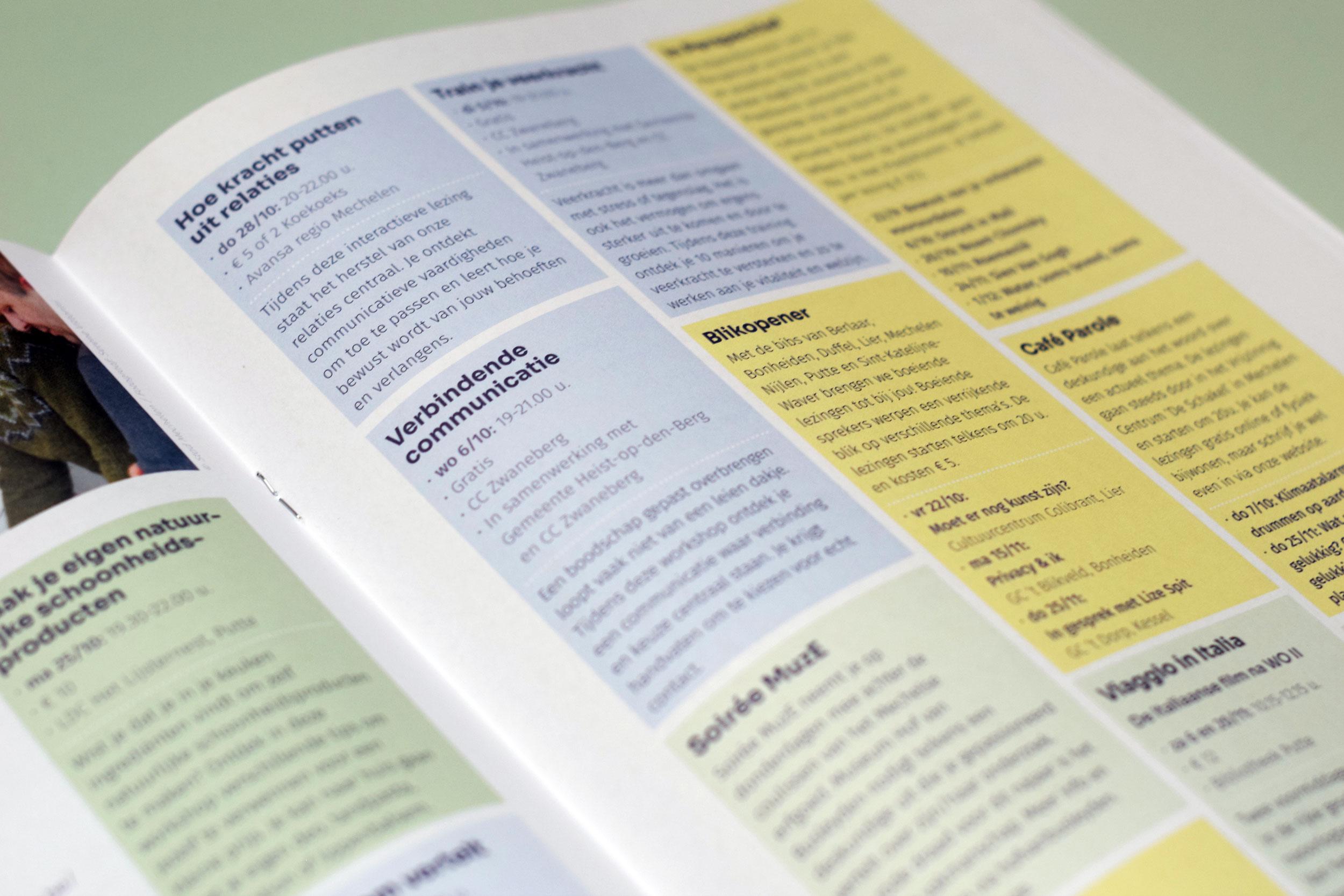 - Vaste rubrieken maken dat elke partner of activiteit volgens dezelfde logica binnenkomt, wat rust geeft voor de lezer én voor het maakproces.