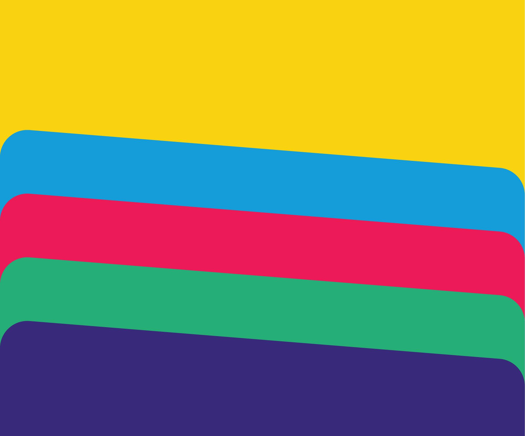 We verfijnden het kleurenpalet: groen en blauw contrasteren nu beter, en pastelvarianten bieden meer flexibiliteit zonder vast te zitten aan felle tinten. De iconische schuine lijnen kregen afgeronde hoeken, wat zorgt voor een zachtere, vriendelijkere uitstraling. Dit nieuwe visuele element, de bandeau, biedt structuur in alle ontwerpen.